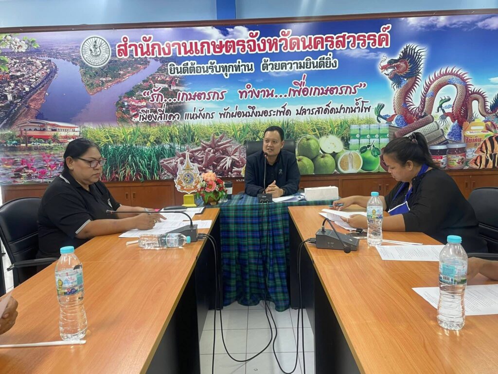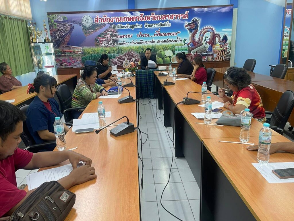 วันศุกร์ที่ 13 กุมภาพันธ์ 2569 เวลา 14.00 น. นายคมกฤช อุทะโก เกษตรจังหวัดนครสวรรค์ พร้อมด้วยนางบุหงา เขียวขำ เกษตรอำเภอตาคลี รักษาการในตำแหน่งหัวหน้ากลุ่มส่งเสริมและพัฒนาเกษตรกร เจ้าหน้าที่และสมาชิกตลาดเกษตรกร ประชุมคณะทำงายตลาดเกษตรกร ครั้งที่ 1/2569 ชี้แจงนโยบายและแนวทางการขับเคลื่อนตลาดเกษตรกรตามแนวทางกรมส่งเสริมการเกษตร และสรรหาคณะทำงานเพื่อดำเนินงานและขับเคลื่อนตลาดเกษตรกรจังหวัดนครสวรรค์ ให้สามารถผลักดันสู่ตลาดสินค้าเกษตรมีมาตรฐานและคุณภาพเป็นเลิศ และเป็นแหล่งกระจายสินค้าเกษตรที่มีปลอดภัยต่อสุขภาพของผู้บริโภค เป็นทางเลือกที่สำคัญต่อผู้มาจับจ่ายใช้สอยตลาดเกษตรกร ณ ห้องประชุมสำนักงานเกษตรจังหวัดนครสวรรค์ จังหวัดนครสวรรค์