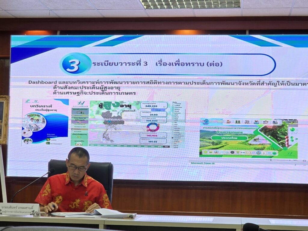 วันที่ 20 กุมภาพันธ์ 2569 เวลา 09.30 น. นายคมกฤช อุทะโก เกษตรจังหวัดนครสวรรค์ มอบหมายให้นางสาวกรรณิการ์ สีแดง นักวิชาการส่งเสริมการเกษตรชำนาญการ กลุ่มยุทธศาสตร์และสารสนเทศ เข้าร่วมประชุมคณะกรรมการสถิติระดับจังหวัด จังหวัดนครสวรรค์ และคณะทำงานสถิติระดับจังหวัด จังหวัดนครสวรรค์ ครั้งที่ 1/2569 ณ ห้องประชุม 3/3 เทศบาลนครนครสวรรค์ ชั้น 3 อำเภอเมืองนครสวรรค์ จังหวัดนครสวรรค์ โดยมีนายบดินทร์ เกษมศานติ์ รองผู้ว่าราชการจังหวัดนครสวรรค์ เป็นประธานการประชุม เพื่อทบทวนปรับปรุงแผนพัฒนาสถิติระดับจังหวัด (พ.ศ. 2566 – 2570) จังหวัดนครสวรรค์ ฉบับทบทวนประจำปีงบประมาณ 2569 ให้สอดคล้องกับแผนพัฒนาจังหวัดฉบับปัจจุบัน พร้อมทั้งจัดทำสารสนเทศในรูปแบบแผนภาพ (Visualization) ที่เป็นการแสดงผลเชิงตอบโต้ (Interactive dashboard) Dashboard ตัวชี้วัดการพัฒนาระดับจังหวัด และ Dashboard สถานการณ์สถิติทางการของจังหวัด