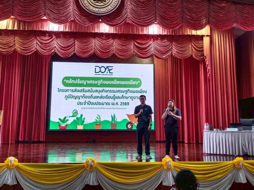 วันจันทร์ที่ 16 มีนาคม 2569 เวลา 09.00 น. นายคมกฤช อุทะโก เกษตรจังหวัดนครสวรรค์ มอบหมายให้นางสาวณัฐณิชา กวีวัฒนา นักวิชาการส่งเสริมการเกษตรชำนาญการ และนายชัชวาล อินสนธิ์ นักวิชาการส่งเสริมการเกษตรปฏิบัติการ กลุ่มส่งเสริมและพัฒนาการผลิต เป็นวิทยากรบรรยายให้ความรู้ความเข้าใจและการขับเคลื่อนการพัฒนาตามหลักปรัชญาเศรษฐกิจพอเพียงแก่ผู้เข้ารับการอบรม รุ่นที่ 2 ตามโครงการส่งเสริมสนับสนุนกิจกรรมเศรษฐกิจพอเพียง ภูมิปัญญาท้องถิ่นแหล่งเรียนรู้และศึกษาดูงาน ประจำปีงบประมาณ พ.ศ. 2569 ในหัวข้อเรื่อง ความรู้ความเข้าใจหลักปรัชญาเศรษฐกิจพอเพียงและการปฏิบัติตามหลัก 6 ด้าน ของหลักปรัชญาเศรษฐกิจพอเพียง และหัวข้อเรื่อง การสร้างทัศนคติและการปรับเปลี่ยนพฤติกรรมการดำเนินชีวิตตามหลักปรัชญาเศรษฐกิจพอเพียง ณ ห้องประชุมชั้น 5 สำนักงานเทศบาลนครนครสวรรค์ อำเภอเมืองนครสวรรค์ จังหวัดนครสวรรค์