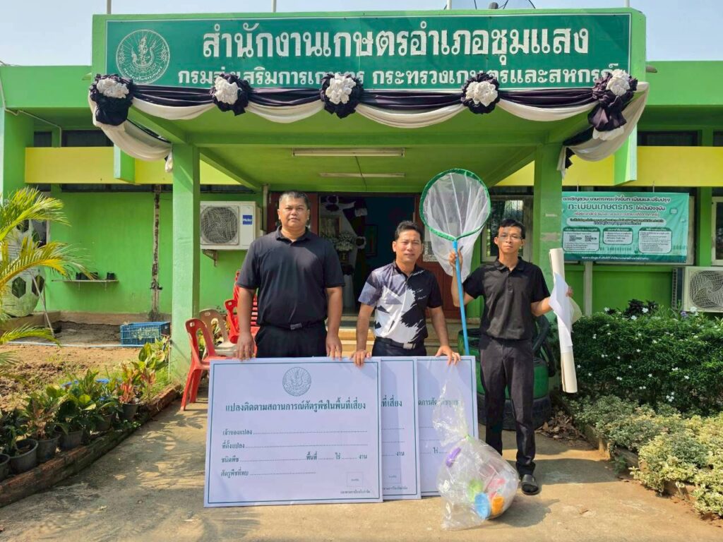 วันที่ 25 มีนาคม 2569 เวลา 09.30 น. นายคมกฤช อุทะโก เกษตรจังหวัดนครสวรรค์ มอบหมายให้ นายเทอดธวัช โสภณดิลก นักวิชาการส่งเสริมการเกษตรชำนาญการ พร้อมด้วยเจ้าหน้าที่กลุ่มอารักขาพืช ทำการลงพื้นที่อำเภอชุมแสงเพื่อส่งมอบวัสดุอุปกรณ์เพื่อใช้ในการสำรวจแปลงติดตามสถานการณ์ศัตรูพืช รวมทั้งทำการสุ่มสำรวจตรวจสารเคมีทางการเกษตรที่ตกค้างในพืชผักของเกษตรกรที่เพาะปลูกในอำเภอชุมแสง ตามโครงการส่งเสริมการจัดการสุขภาพพืชเพื่อเพิ่มประสิทธิภาพการผลิตสินค้าเกษตร ณ สำนักงานเกษตรอำเภอชุมแสง หมู่ที่ 17 ตำบลเกยไชย อำเภอชุมแสง จังหวัดนครสวรรค์
