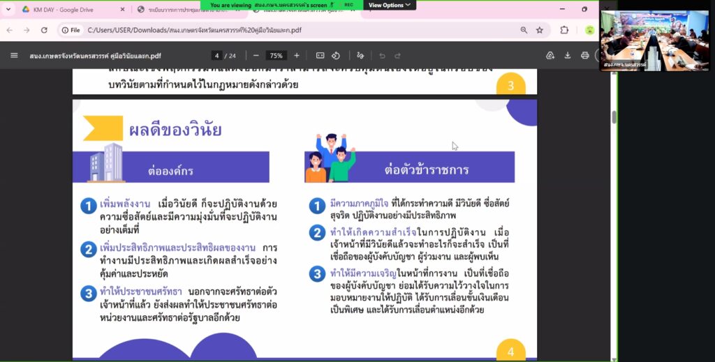 🌟 องค์ความรู้ที่ได้รับการถ่ายทอดวันนี้ ผลดีของการมีวินัย ข้อกำหนดวินัยที่ข้าราชการต้องยึดถือ (ตาม พ.ร.บ. ข้าราชการพลเรือน) วินัยต่อประเทศชาติ วินัยต่อผู้ร่วมงาน วินัยต่อประชาชน วินัยต่อผู้บังคับบัญชา วินัยราชการต่อตำแหน่งหน้าที่ วินัยต่อตนเอง หน้าที่ของผู้บังคับบัญชาในการรักษาวินัย และเหตุที่มักทำให้เกิดการทำผิดวินัย❤️