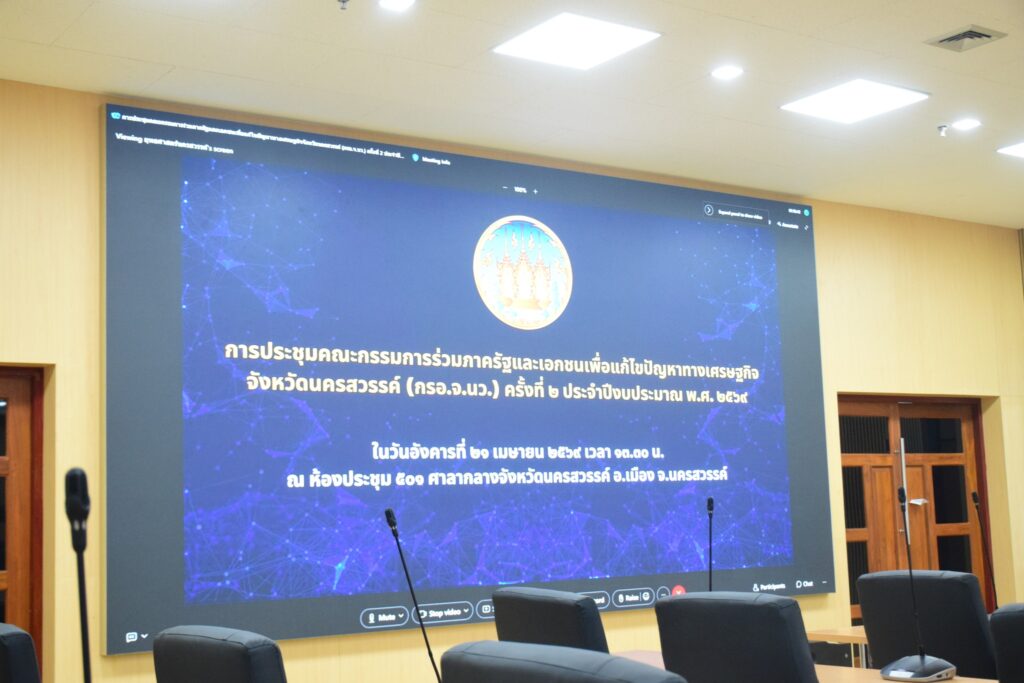 วันที่ 21 เมษายน 2569 นายคมกฤช อุทะโก เกษตรจังหวัดนครสวรรค์ มอบหมายให้ นางนันทิยา วาสุกรี หัวหน้ากลุ่มยุทธศาสตร์และสารสนเทศ เข้าร่วมประชุมคณะกรรมการร่วมภาครัฐและเอกชนเพื่อแก้ไขปัญหาทางเศรษฐกิจจังหวัดนครสวรรค์ (กรอ.จ.นว.) ครั้งที่ 2 ประจำปีงบประมาณ พ.ศ. 2569 ณ ห้องประชุมนิวาสธรรมขันธ์ 501 ศาลากลางจังหวัดนครสวรรค์ ชั้น 5 อำเภอเมืองนครสวรรค์ จังหวัดนครสวรรค์ โดยมีนางสาวชุติพร เสชัง ผู้ว่าราชการจังหวัดนครสวรรค์ เป็นประธานในการประชุม