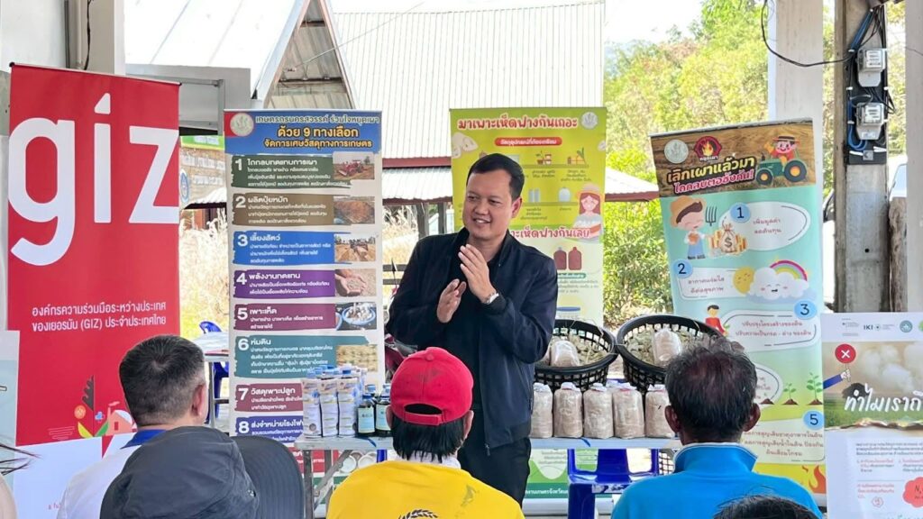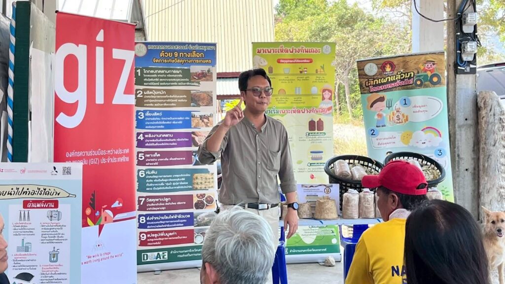 วันที่ 2 กุมภาพันธ์ 2569 เวลา 13.00 น. นายคมกฤช อุทะโก เกษตรจังหวัดนครสวรรค์ พร้อมด้วยนางสาวชุติกาญจน์ รักหาญ เกษตรอำเภอโกรกพระ รักษาการในตำแหน่งหัวหน้ากลุ่มอารักขาพืช เจ้าหน้าที่สำนักงานเกษตรจังหวัดนครสวรรค์ และเจ้าหน้าที่สำนักงานเกษตรอำเภอโกรกพระ ร่วมกับองค์กรความร่วมมือระหว่างประเทศของเยอรมัน (GIZ) และภาคเอกชน(ห้างหุ้นส่วนจำกัด ลิ่มเชียงเส็ง นครสวรรค์-LCS) ทดสอบเครื่องตัดตอซังและขนย้ายฟางข้าวออกจากแปลงเพื่อสร้างมูลค่าเพิ่มจากเศษวัสดุเหลือใช้ทางการเกษตร โดยสาธิตการเพาะเห็ดฟางในตะกร้า การทำปุ๋ยหมักแบบไม่กลับกอง และการประชาสัมพันธ์การบริหารจัดการและใช้ประโยชน์เศษวัสดุเหลือใช้ทางการเกษตร (ฟางข้าว) มาปรับเปลี่ยนเป็นไบโอชาร์