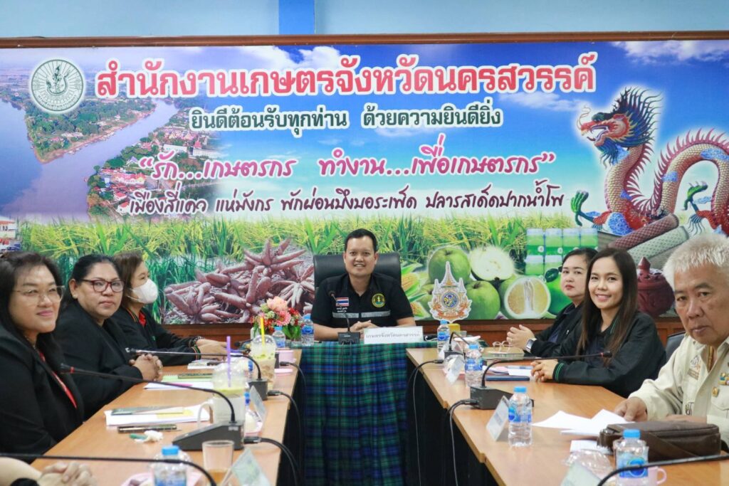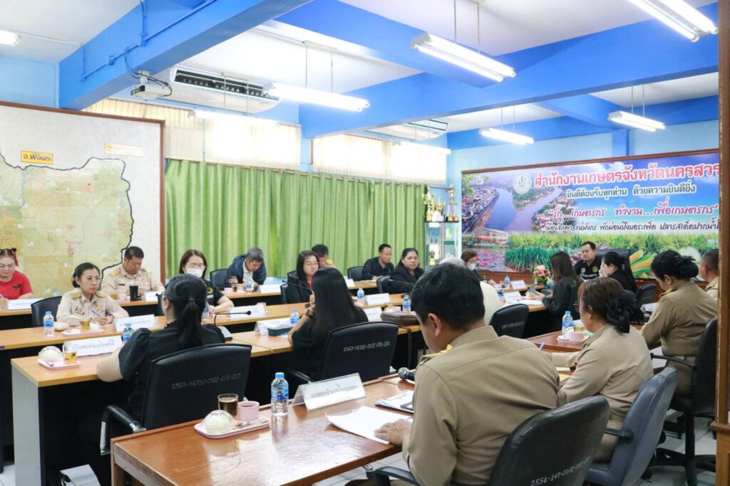 วันที่ 2 กุมภาพันธ์ 2569 เวลา 16.00 น. นายคมกฤช อุทะโก เกษตรจังหวัดนครสวรรค์ พร้อมด้วยหัวหน้ากลุ่ม/หัวหน้าฝ่าย เกษตรอำเภอ และเจ้าหน้าที่ ประชุมคณะทำงานขับเคลื่อนการบริหารจัดการตลาดสินค้าเกษตร ระดับจังหวัด ครั้งที่ 1/2569 เพื่อขับเคลื่อนงานตลาดเกษตรกรจังหวัดนครสวรรค์ เป็นไปตามแนวทางของกรมส่งเสริมการเกษตร พร้อมพิจารณาการเปิดรับสมัครสมาชิกตลาดเกษตรกร หลักเกณฑ์ และกฎระเบียบในการกำกับดูแล ขับเคลื่อนและดำเนินการให้เป็นตลาดที่มีมาตรฐาน มีสินค้าเกษตรที่มีคุณภาพและมาตรฐานที่ผ่านการรับรอง เข้าถึงกับผู้บริโภคทุกกลุ่มเป้าหมาย และเป็นช่องทางสำคัญในการกระจายสินค้าเกษตรที่มีมาตรฐานจากเกษตรกรผู้ปลูกโดยตรง ณ ห้องประชุมสำนักงานเกษตรจังหวัดนครสวรรค์ อำเภอเมืองนครสวรรค์ จังหวัดนครสวรรค์