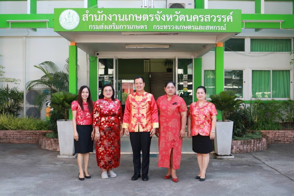 วันที่ 5 กุมภาพันธ์ 2569 นายคมกฤช อุทะโก เกษตรจังหวัดนครสวรรค์ พร้อมด้วยเจ้าหน้าที่สำนักงานเกษตรจังหวัดนครสวรรค์ ร่วมแต่งกายด้วยเสื้อสีแดงและชุดธีมจีน ในเทศกาลตรุษจีนนครสวรรค์ ประจำปี 2569 ณ บริเวณสำนักงานเกษตรจังหวัดนครสวรรค์