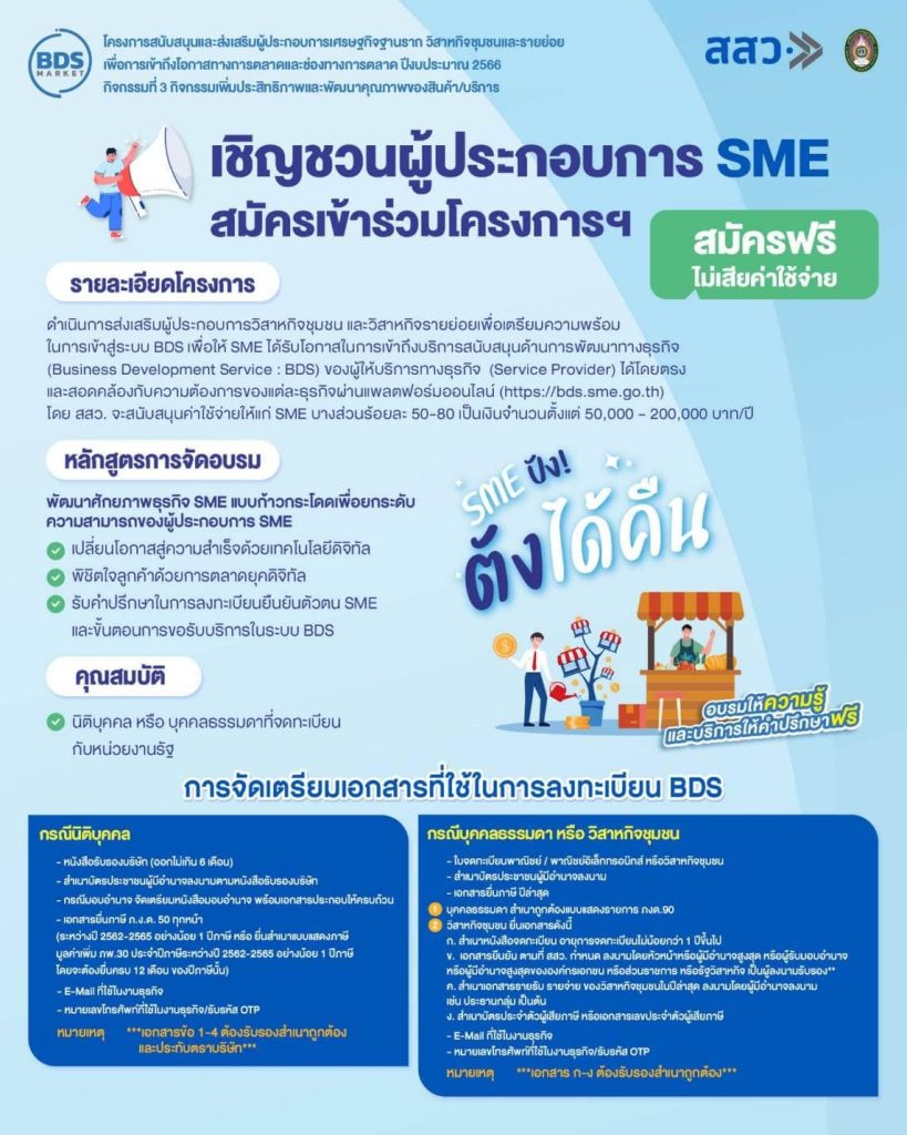 เชิญ SME สมัครเข้าร่วมโครงการฯ